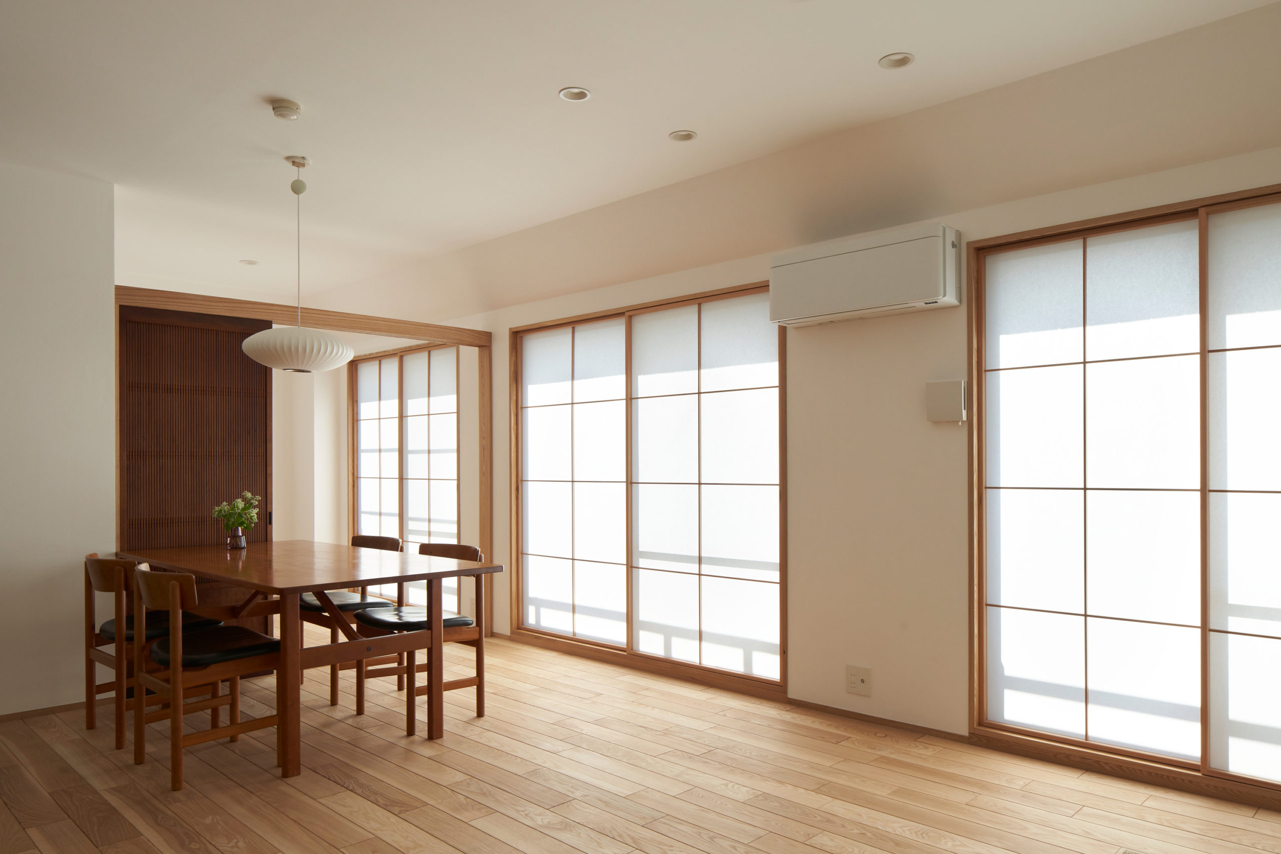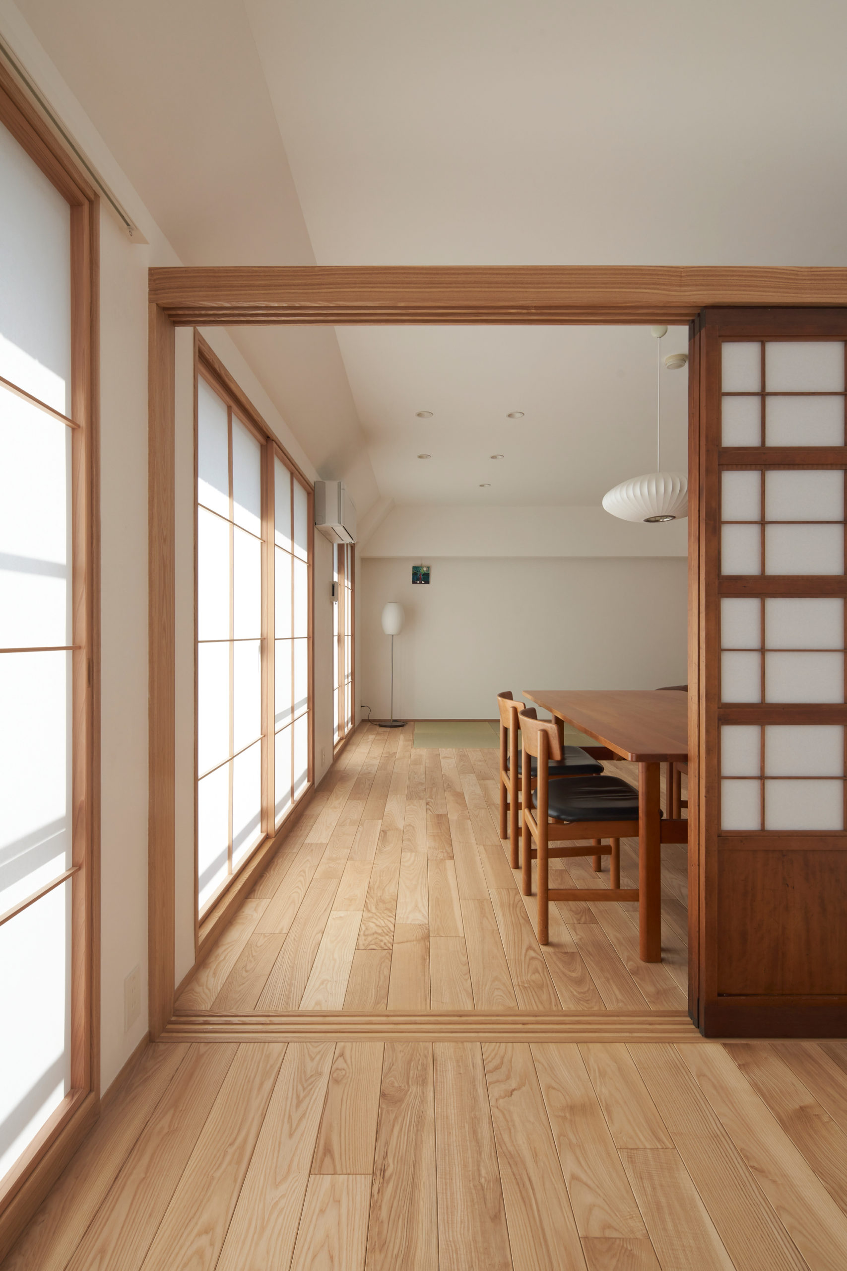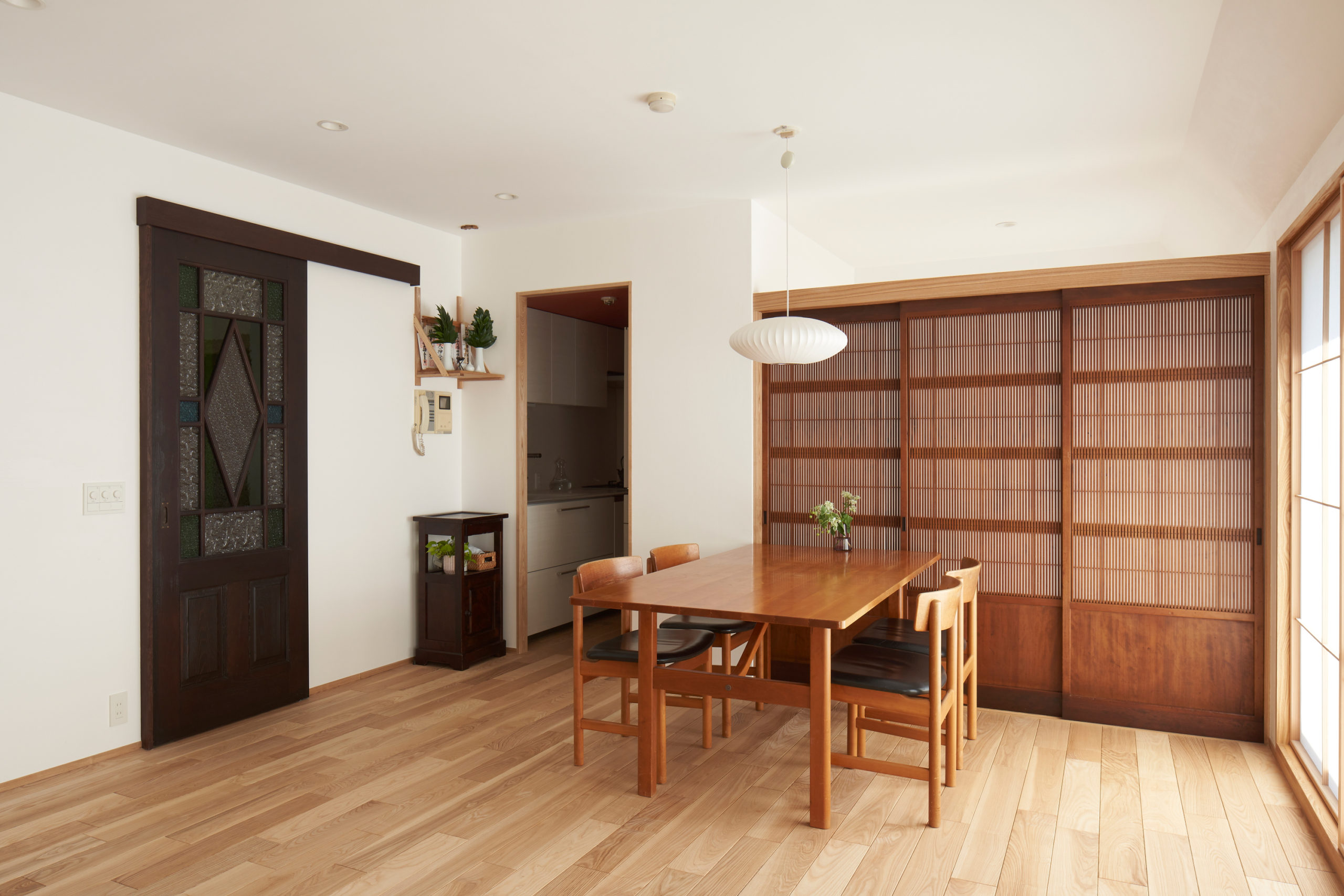 古建具の導入し、明るい空間でありつつも、どこか古さが共存している空間を目指しました。