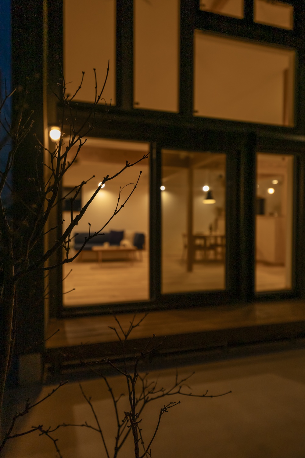 クライアントとともに梅側の眺望とるか西面開口を諦めるかだいぶ悩み、リビングは南面大開口と北面のみの窓といたしました。
